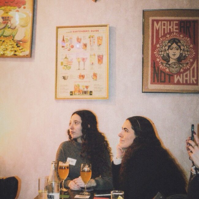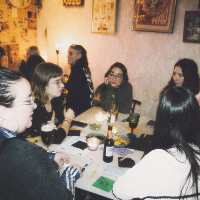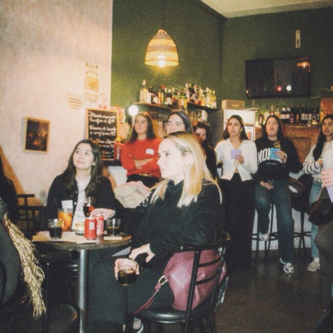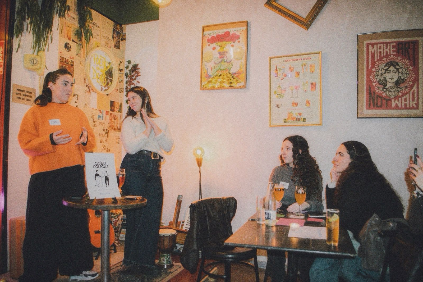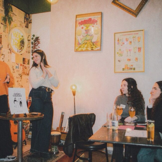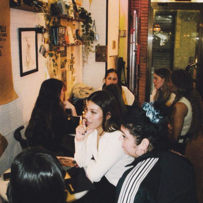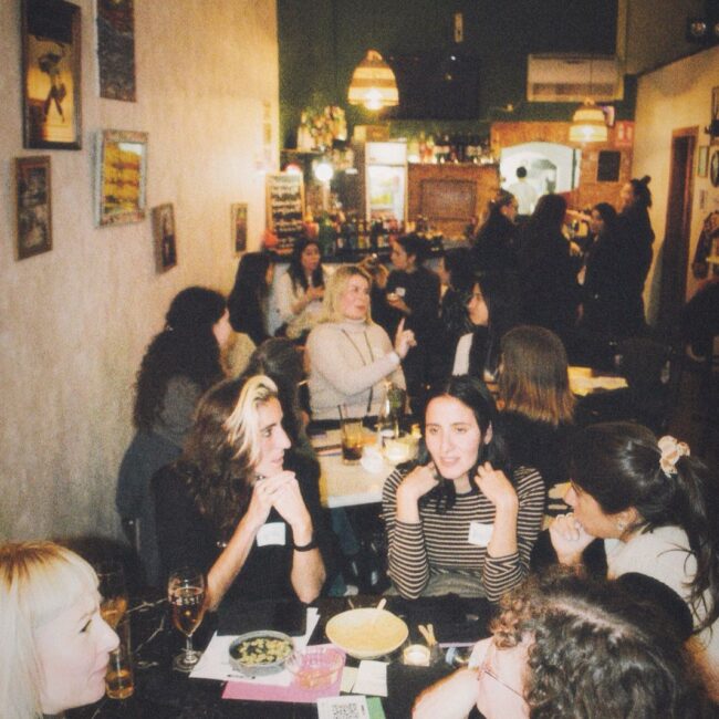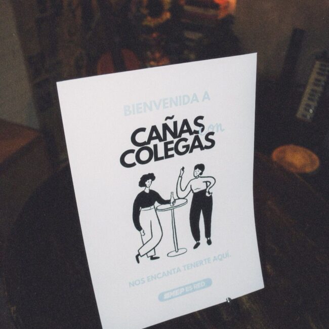 Rocío Restaino (Directora General de MEP), Yan de Simone y Cami Pardo (también de MEP Argentina) estaban de visita en Barcelona y me preguntaron si me animaba a organizar algo. Yo, que llevaba semanas buscando cómo conectar con personas de la industria sin encontrar espacios concretos, no lo dudé. Así nació “Cañas con colegas”, un encuentro abierto para mujeres y disidencias del mundo de la comunicación.